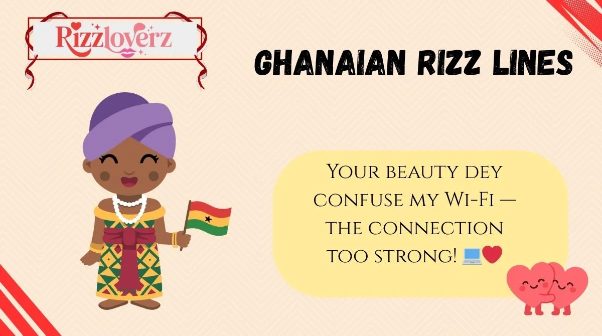Ready to spice up your game with some smooth Ghanaian flavor? 🌶️ Whether you’re sliding into DMs, flirting on TikTok, or just tryna charm your crush at a party, these 177+ Ghanaian Rizz Lines will have them blushing, giggling, and maybe even saying, “Ei, who taught you that?” 😏