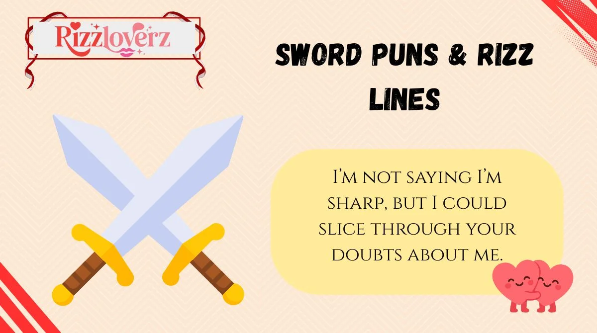 They’re clever, flirty lines that mix sword humor with confident wordplay—perfect for Gen Z energy and playful vibes.